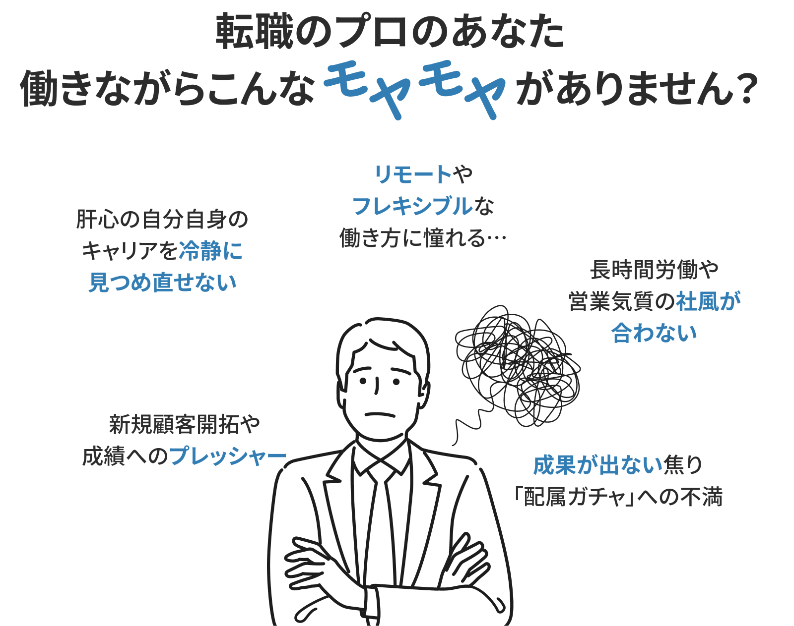 企業支援とキャリアコンサルティングを一気通貫で対応。担当企業の成長を支援できる一方で、人材の転職先での成長を肌で感じることができないもどかしさやマーケットの変化によって注力企業を入れ替え続けないとならないため1社に深く入り込めない。
